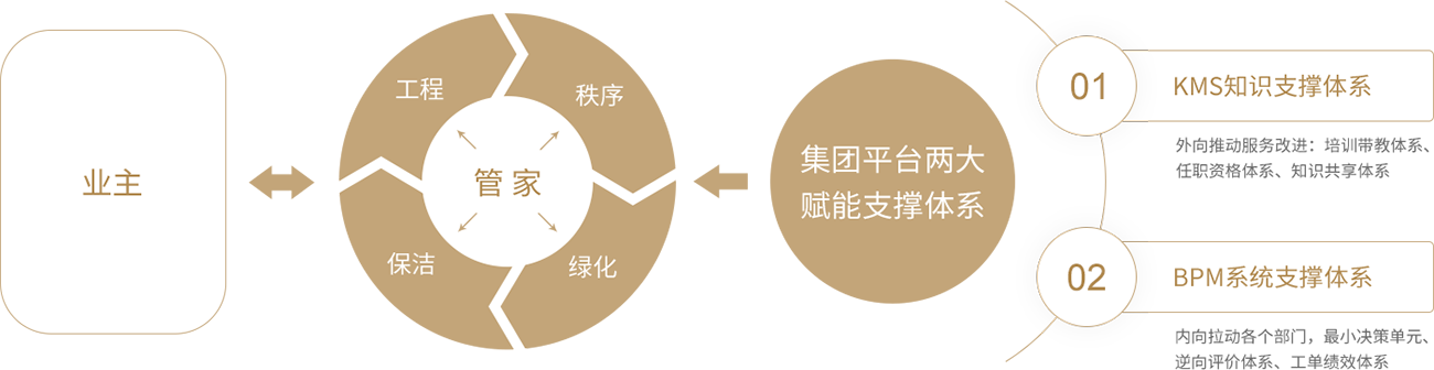 遵循以人为本的原则,根据业主的个性化需求和服务产品的类型提供专属的管家服务。针对城市服务产品提供金牌管家服务,针对社区服务产品提供和管家服务。